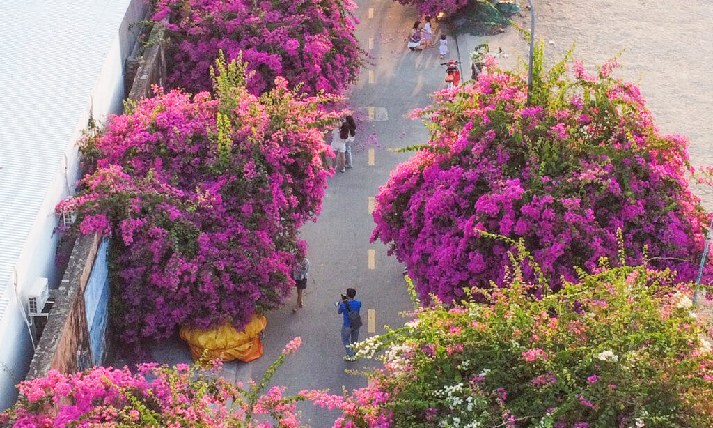 Đường hoa giấy nở rộ tại làng chài Nha Trang